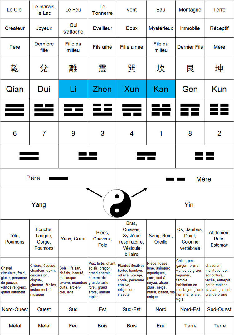 Développement et de leur attributs des Huit Trigrammes pour la personne